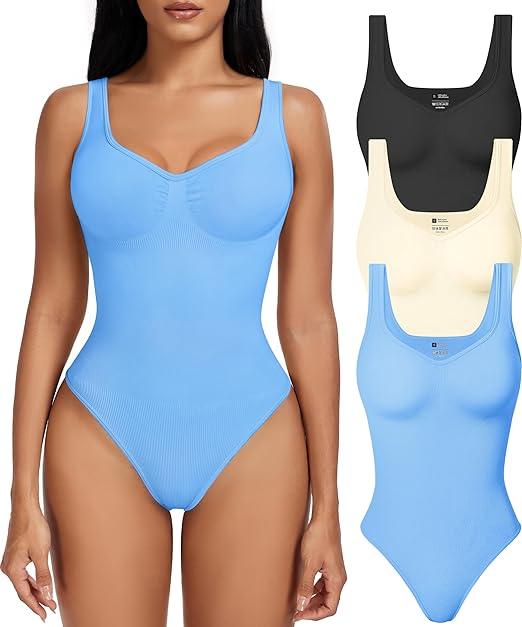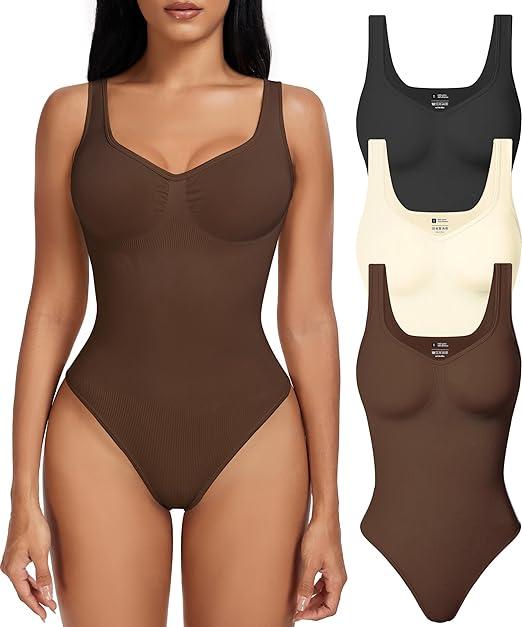 ·PREMIUM RIBBED FABRIC —— 90% Nylon+10% Elastane, lightweight, high stretchy, breathable, not see through.This seamless ribbed fabric shapewear bodysuit is extremely comfortable, once you put it on, you won't want to take it off.