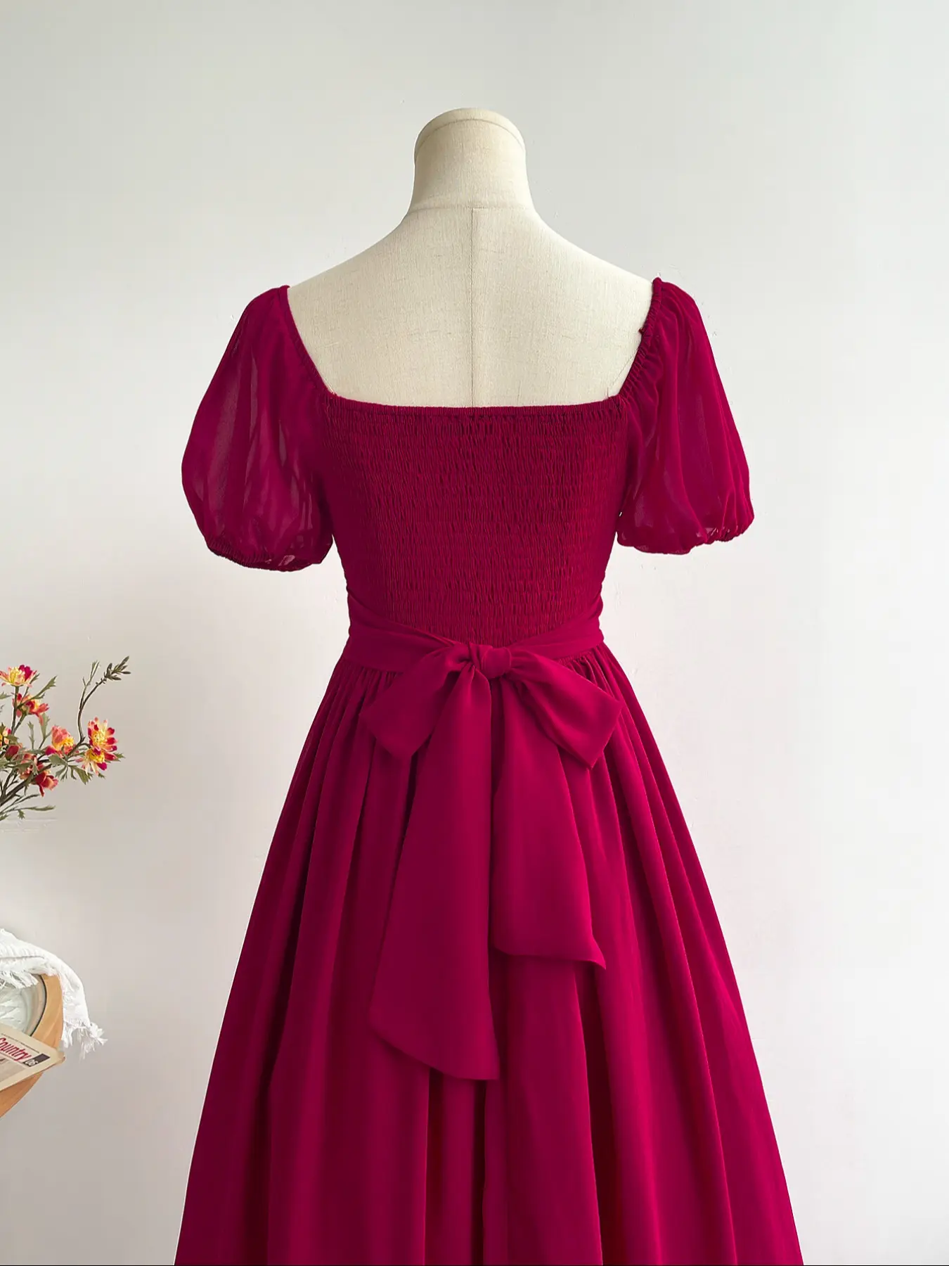 5. Women's Bohemian Vacation Elegant Chic Casual Waist-Tied Chiffon Woven Floral Long Short Sleeve Ruffle Hem Dress, All Seasons Fitted Style