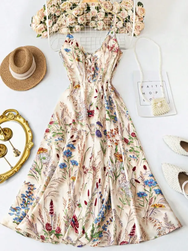 5. Women's Boho Floral-Print Cami Dress, Fashion Casual A-Line Dress for Beach Holiday Vacation, Perfect for Summer Spring