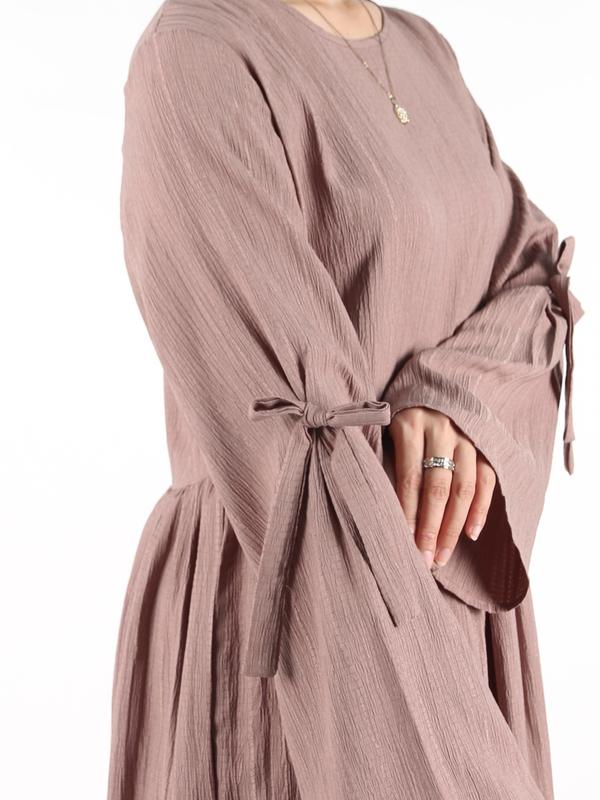 Women’s Plain Bow Decor Flounce Sleeve Pocket Smock Dress, Casual Long Sleeve Round Neck for Daily Wear, Perfect for All Seasons #loungedress #cottondress #longsleevejumpsuit #plussizedresses #pinkmaternitydress #curvydresses #zaraoutfits #dressesforwaddingguests #cheetahdress #azaziedress