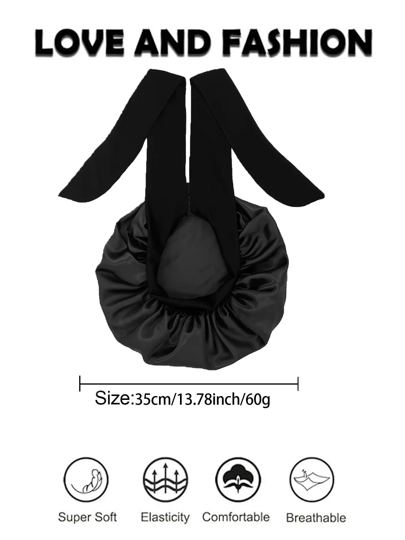 Satin Sleep XL Adjustable Bonnet - Black