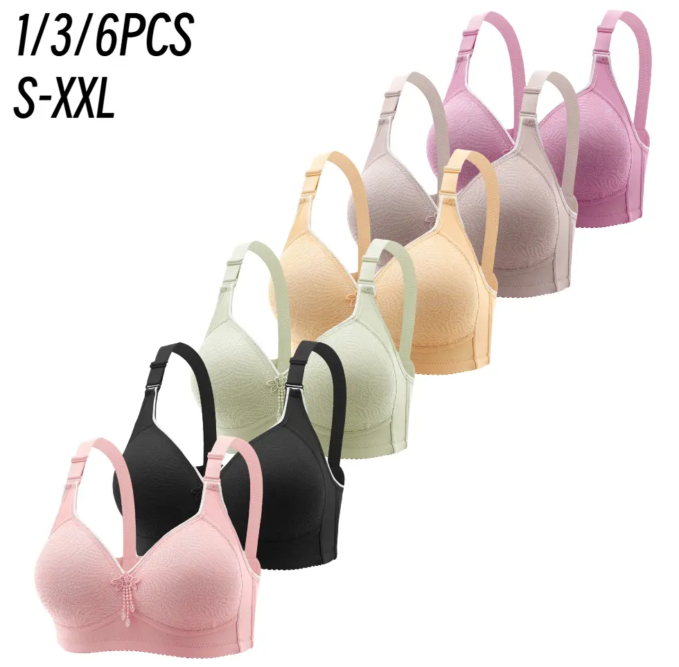 1/3/6PCS Women's Breathable Push Up Bra, Adjustable Strap Soft Comfortand Fit Adjustable Hook & Eye Lingerie Top for Daily Wear, Lingerie for All Seasons, Soft Fabric Bra