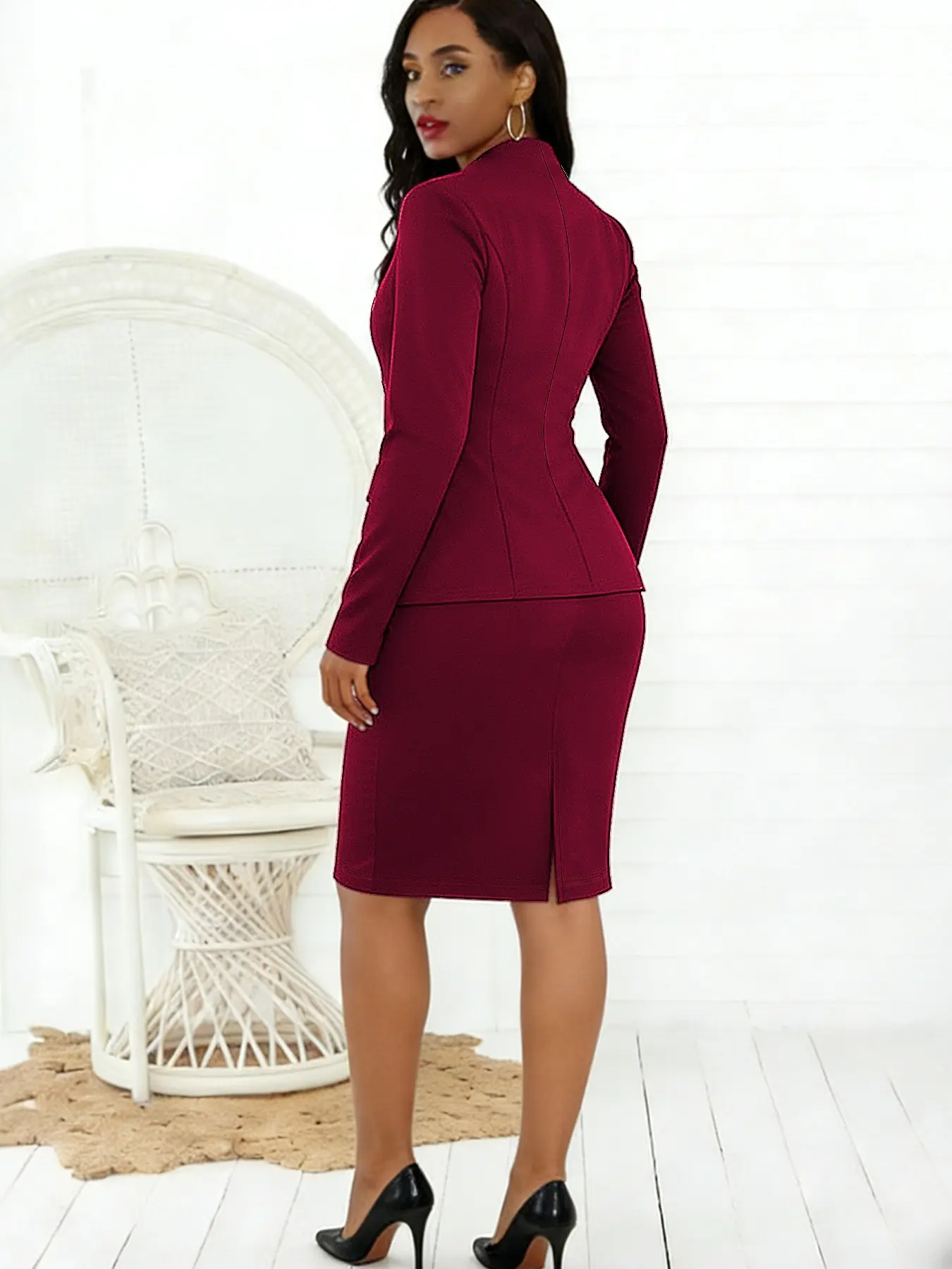 【Two-piece set】: Features a coordinated blazer and pencil skirt combination, perfect for polished, professional attire.