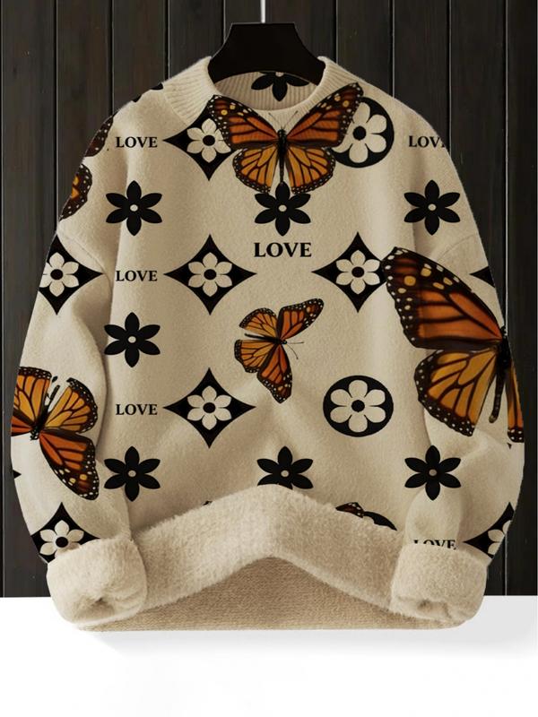 【Butterfly Pattern】: Features a unique butterfly print that adds a distinctive touch to this sweater, setting it apart from typical knitwear.