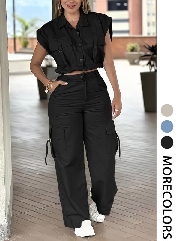 Women's Solid Button Front Tank Top & Cargo Pants#twopieceset #streetwear #OOTD #tiktokshop #spotlightfinds