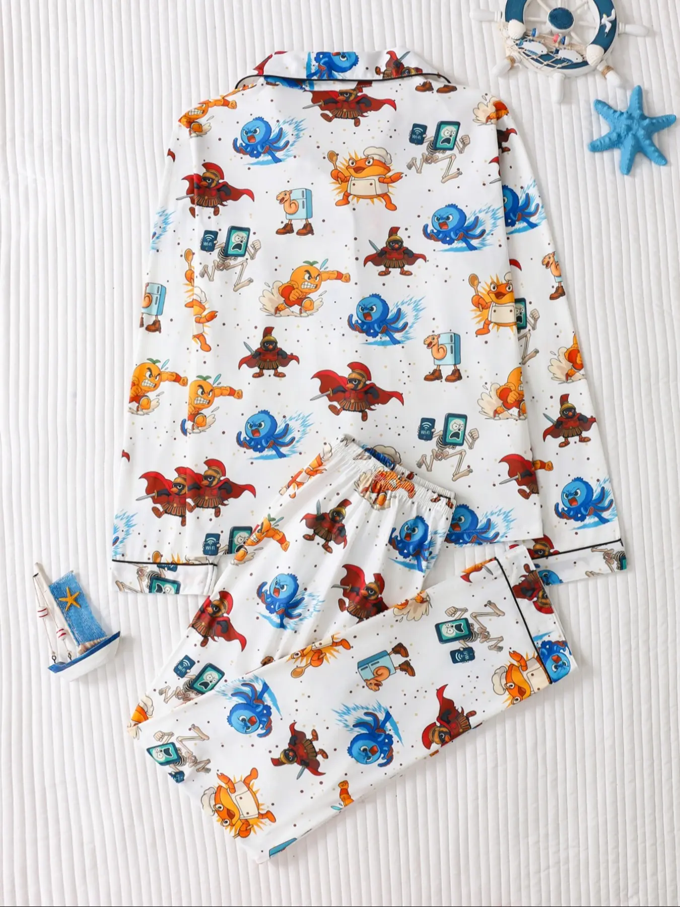 【Cartoon Pattern】: Featuring a playful cartoon print that adds a fun touch, setting it apart from traditional sleepwear.