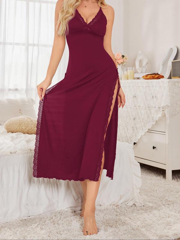 Women's Solid Color Cami Nightdress, Soft Casual Nightdress, Elegant Comfy Spaghetti Strap Nightgown for Daily Wear, Ladies Sleepwear for All Seasons, Womenswear, Sleeveless Nightgown