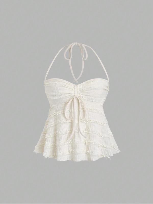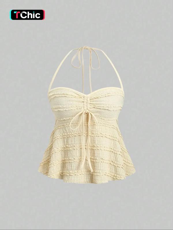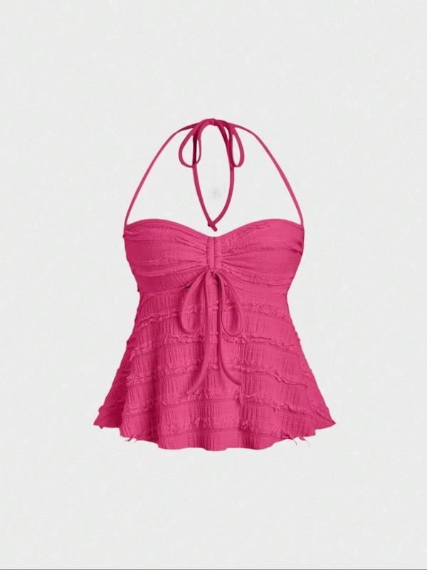 Women's Plain Drawstring Cami Top, Boho Sleeveless Casual Top for Summer, Ladies Clothes for Beach Holiday, Womenswear