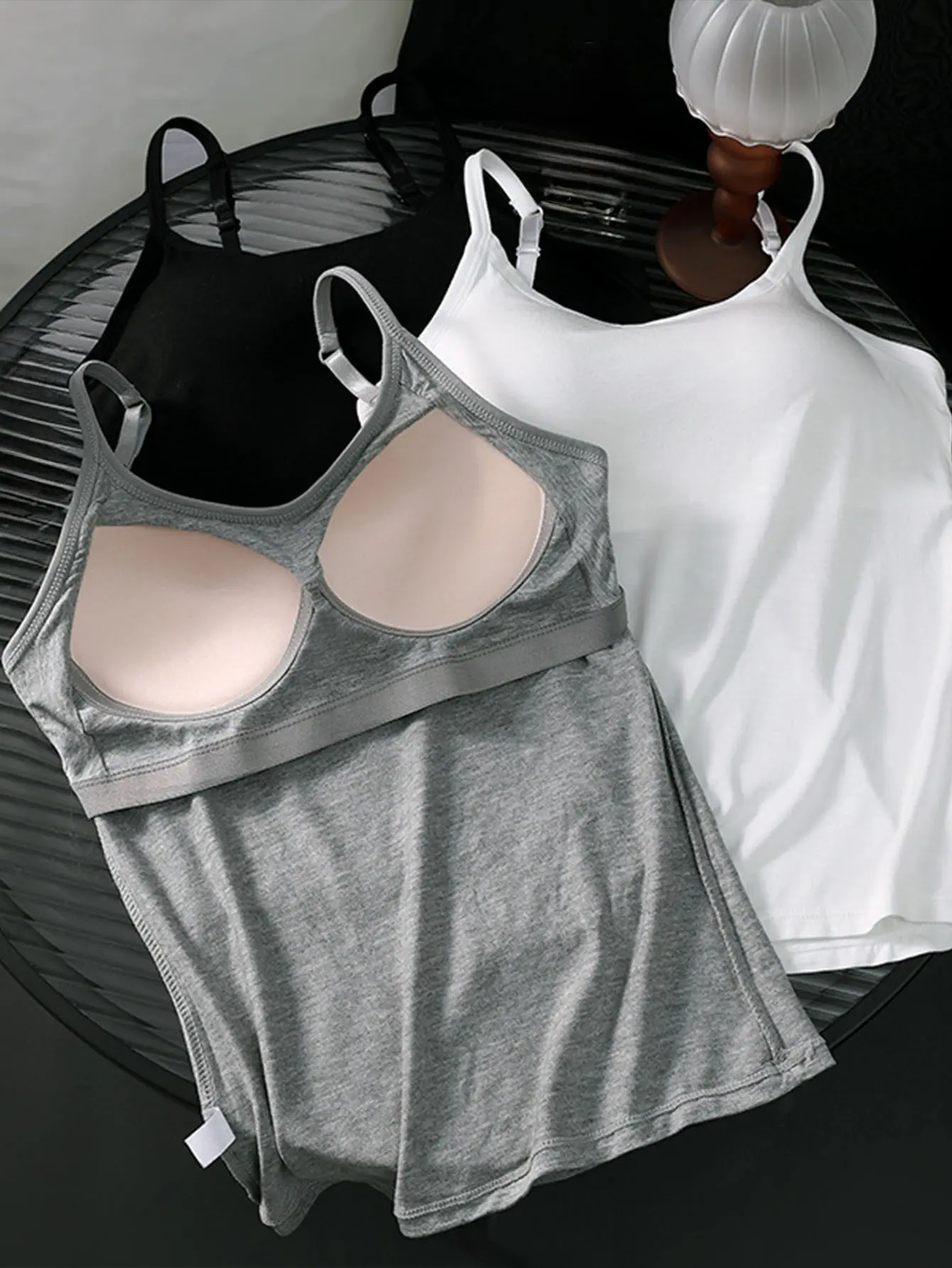 Enjoy the perfect blend of softness and structure with a convenient built-in bra for light support. The seamless design moves with you, eliminating irritation. This camisole tank top ensures all-day comfort, making it ideal for layering under clothes.