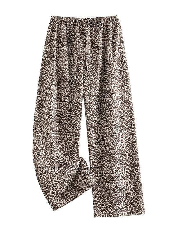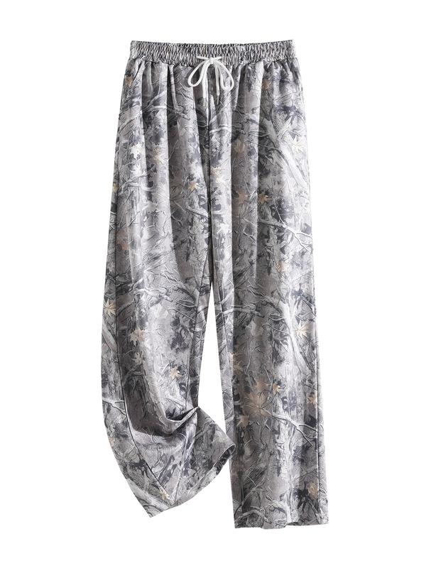 Women's Camo Wide Leg Pants with Pockets, Loose-Fit Drawstring Waist, Casual Fashion for Spring Summer Fall, Adult Clothing