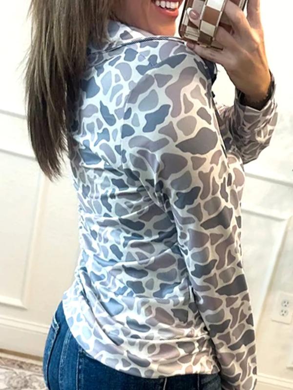 5. Women's Casual Camouflage Print Kangaroo Pocket Zip Collar Pullover Sweatshirt, Spring & Fall Fashion, Long Sleeve Pullover Sweatshirt