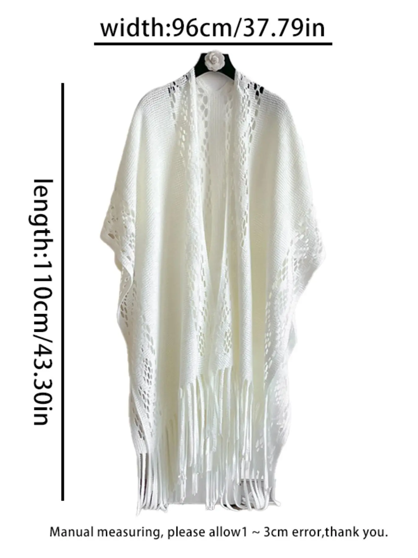 5. Women's Solid Color Hollow Out Fringe Trim Cape Shawl, Casual Elegant Shawl for Daily Wear, Fashion Accessories for Women & Girls, Clothes