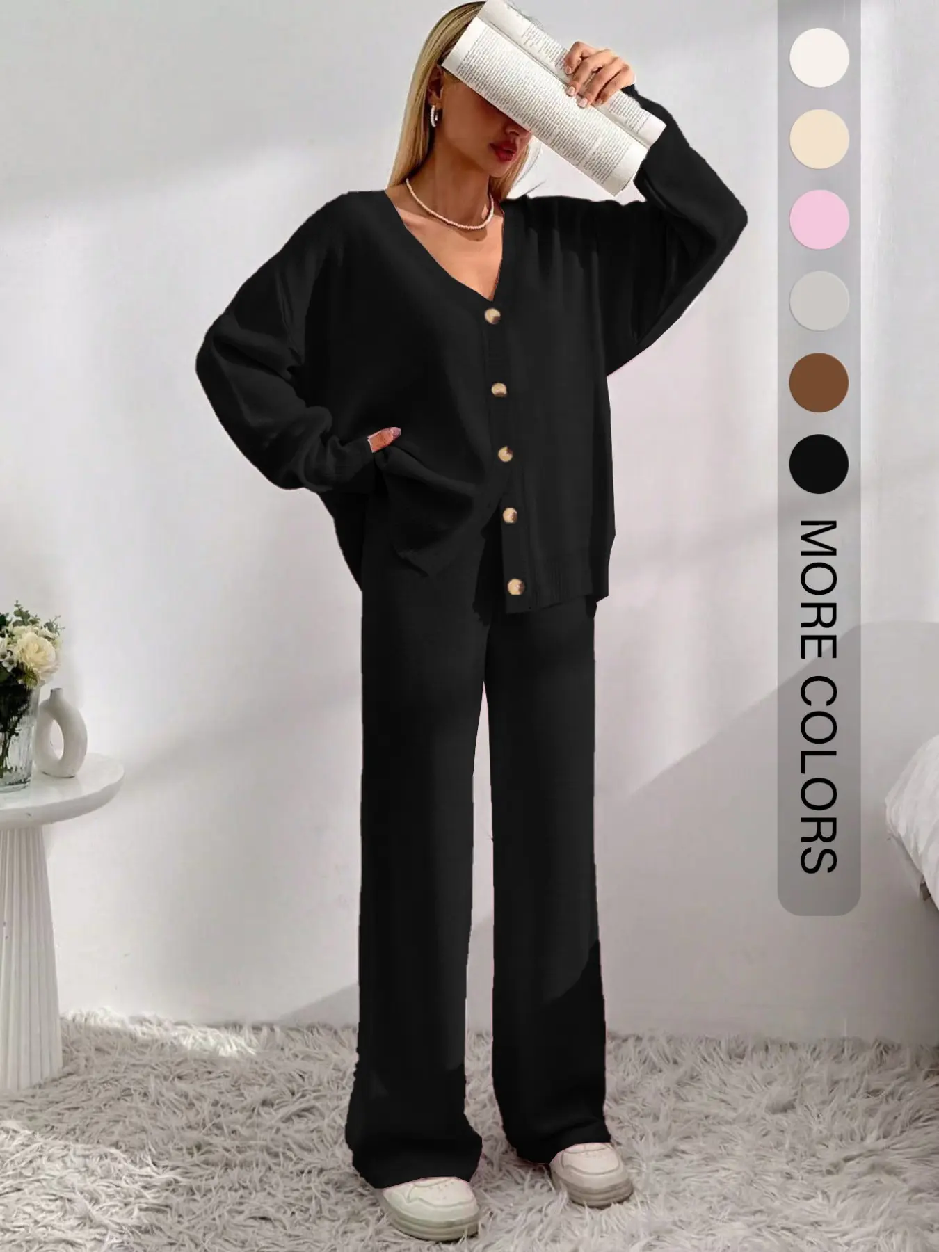 This set is so cute and comfortable! The color is vibrant and pretty. I will say the pants are super tall girl friendly. I’m 5’3” and the pants are way toooo long. I normally wear medium, but I could have gone for a small. Still love it!