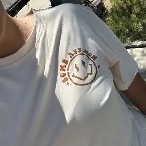 This shirt is amazing the material is soft and stretchy for us thick women with chubby arms lol lovw the letters on the back and the fast shipping I'm so happy go buy it ladies