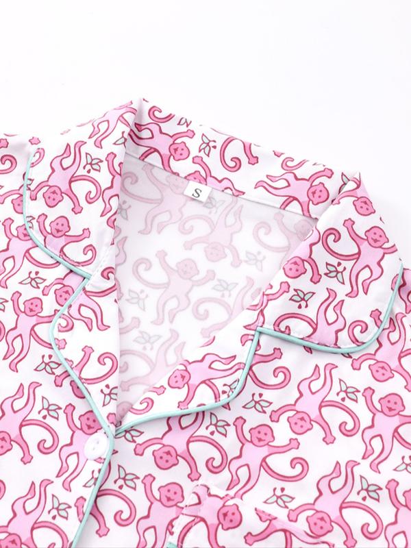 【All-over print】: Featuring a vibrant cartoon pattern, this sleepwear set adds a playful touch to your loungewear collection.