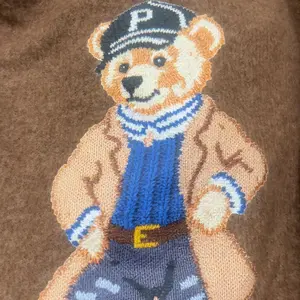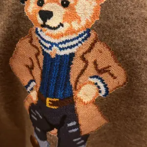 The bear isn’t sewn on. It looks more like an iron on transfer. If you’re buying it thinking it looks like a RL dupe, it isn’t. It’s casual and will look nice with jeans.