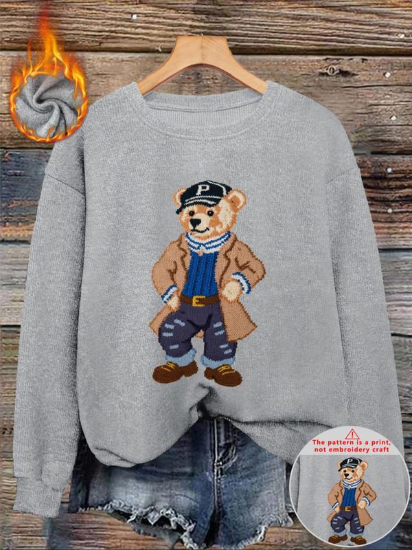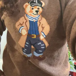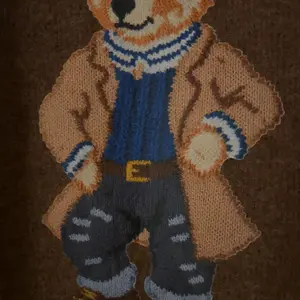 This is not a sweater and the bear is an iron on. The pictures are very misleading. It’s 90% polyester