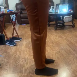 Overall, nice outfit. The color is more of a caramel chestnut had to return. The pants are not tall or friendly. I’m only 5‘6“, but they only hit at the ankles. Most of my height is in my legs, though. It may work if you’re more evenly proportioned.