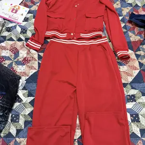 Overall a cute outfit. Color is a bright red. The material is a bit thin, but skin tone 🩲 can fix that. Pants are on the short side, had to return. I’m 5’6.5” on a good day 😅and they hit at my ankle. Most of my height is in my legs, so these may work if you’re about evenly proportioned.