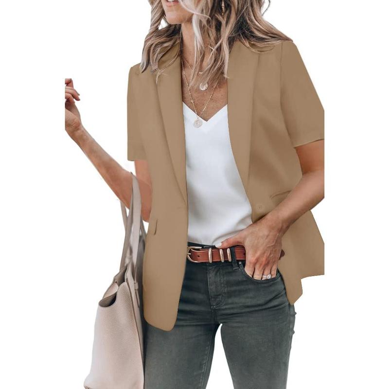 5. Women's Casual Blazer Short Sleeve Lapel Open Front Work Office Suit Jacket