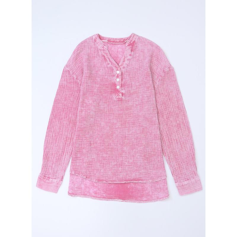 ·Feature: V Neck, Solid Color, Front Button Closures, Long Sleeves with Button Cuffs, wear as 3/4 sleeves or full sleeve, Side Slit, Textured Fabrication, Boyfriend Style, Loose Fit Shirts