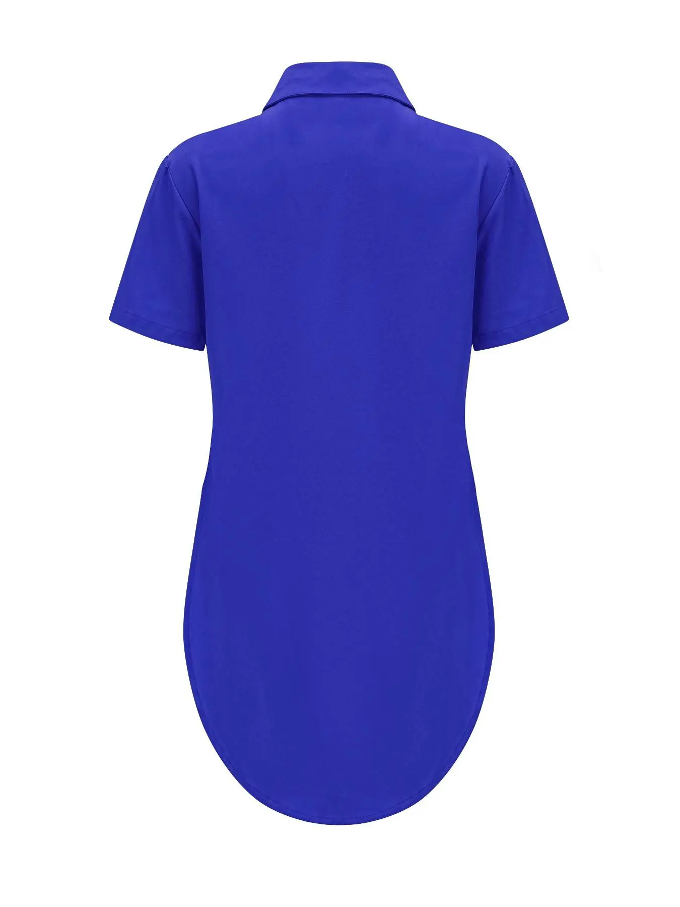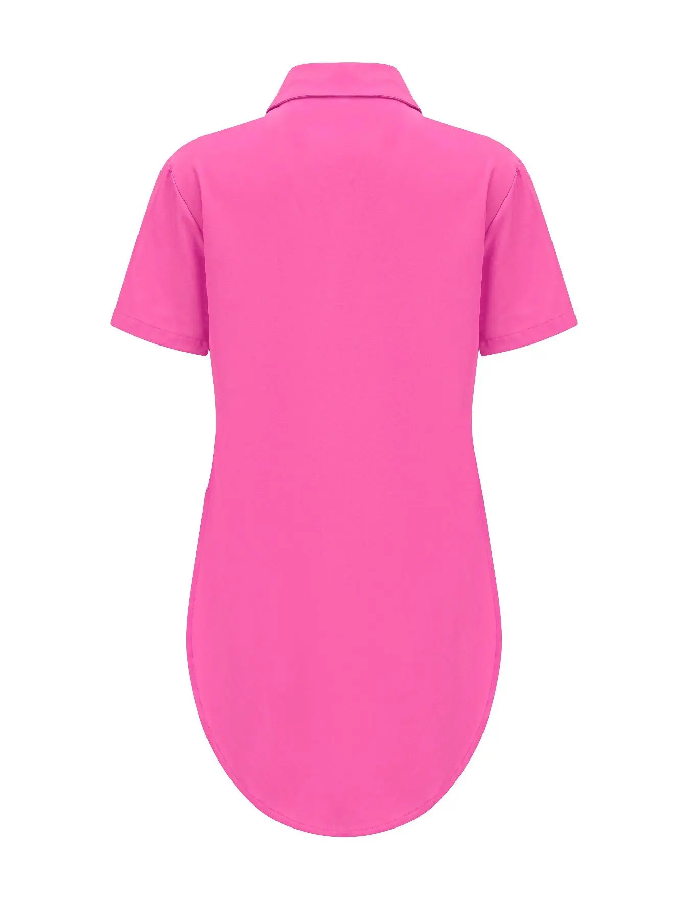 Cute shirt, excellent material quality, looks exactly like it shows on screen. I like the length, good for jeans or leggings or even business casual (with, say a slim pant). True to size and it buttons fine around an ample chest.