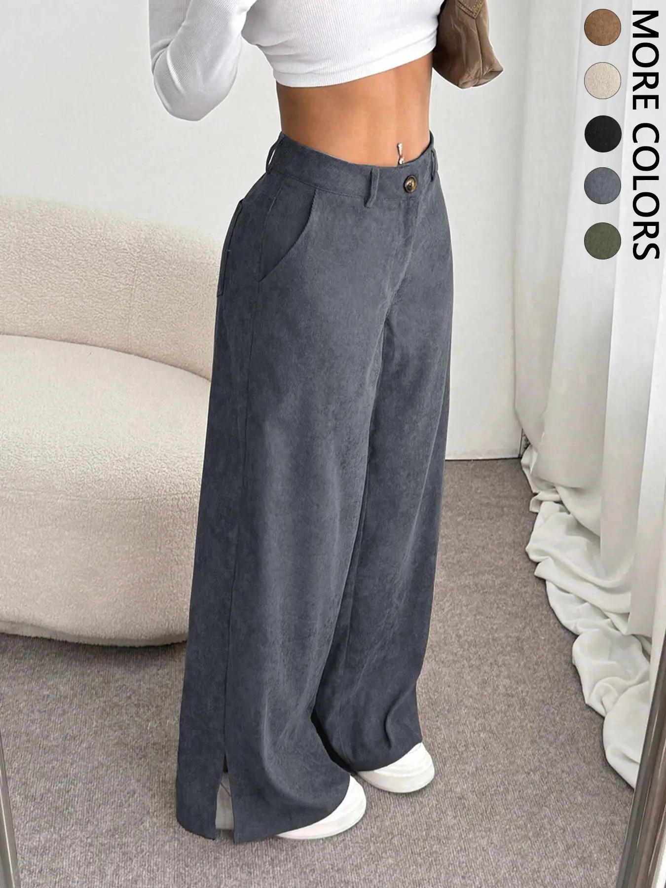 Demasiada buena calidad, comodo, queda lindo y a la moda, es Corduroy ligero, nada pesado ni rasposo, me gusta que es tiro alto y aunque es ancho, no te aplana atras.