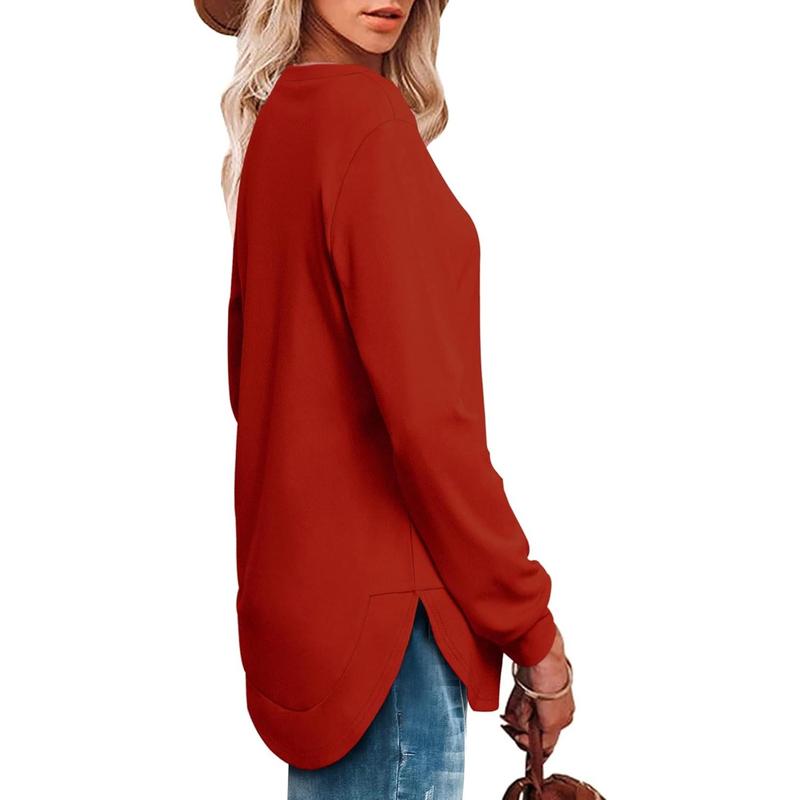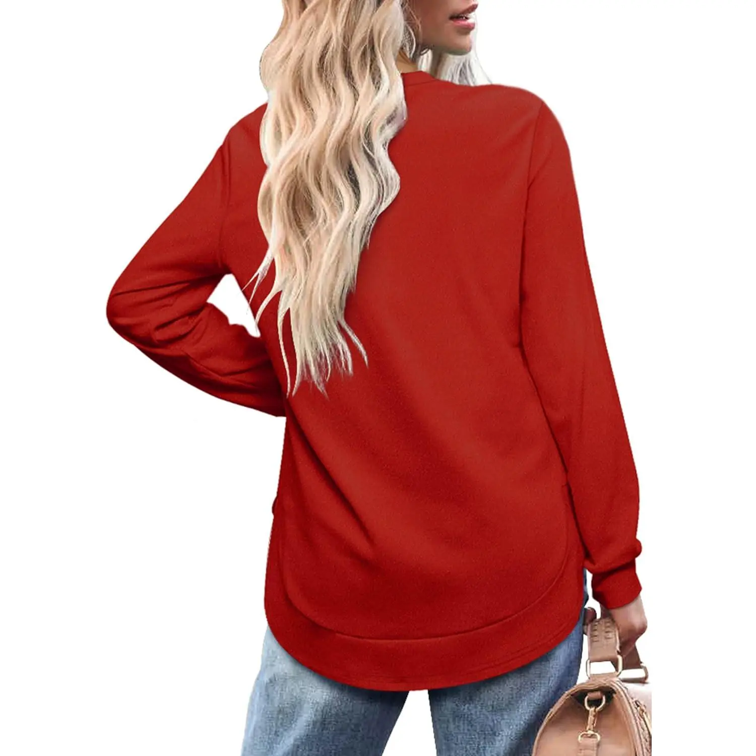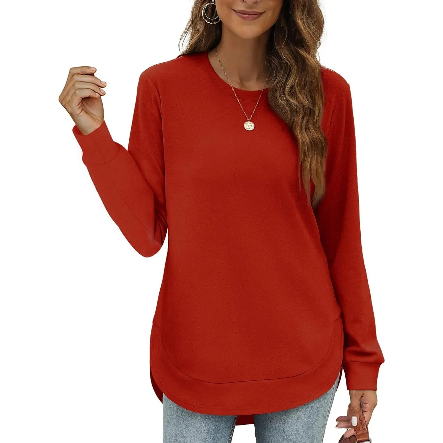 Womens Sweatshirt Crewneck Long Sleeve Shirts High Low Tops Curved Hem