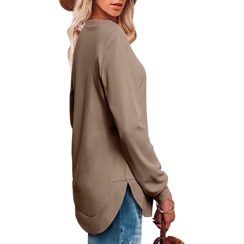 5. Womens Sweatshirt Crewneck Long Sleeve Shirts High Low Tops Curved Hem