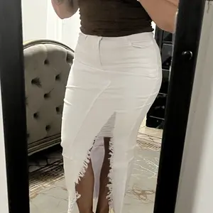 ·Features: Black denim with a stylish slit and back rip. It features a high waist, stretchy material, and washed frayed edges. The raw hem adds a trendy touch. Comes with a button fly and zipper closure. Basic 4 pockets included. 👖