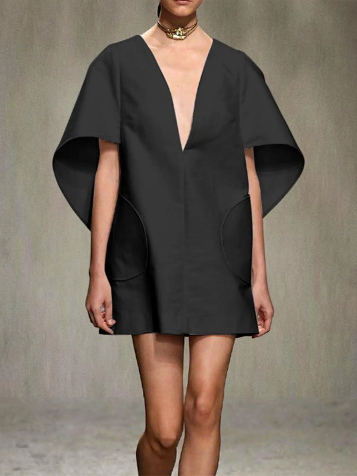 Women's Plain Dress, Casual Batwing Sleeve Dress for Summer, Fashion Chic Elegant Fit Women's Dress for Daily Wear, Womenswear, Dresses for Women, Lady Minimalist Formal Elegant Dress
