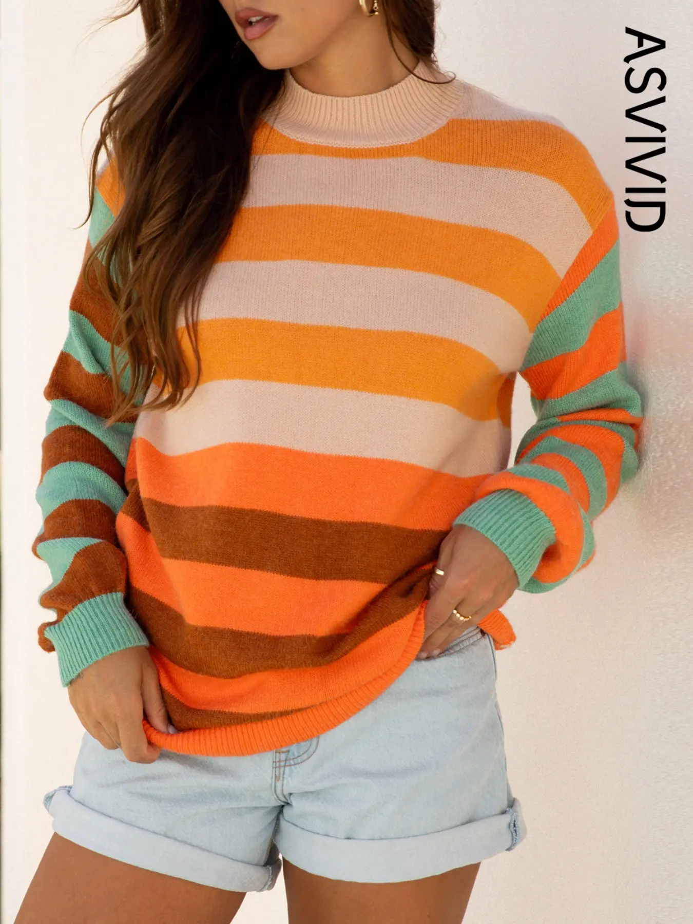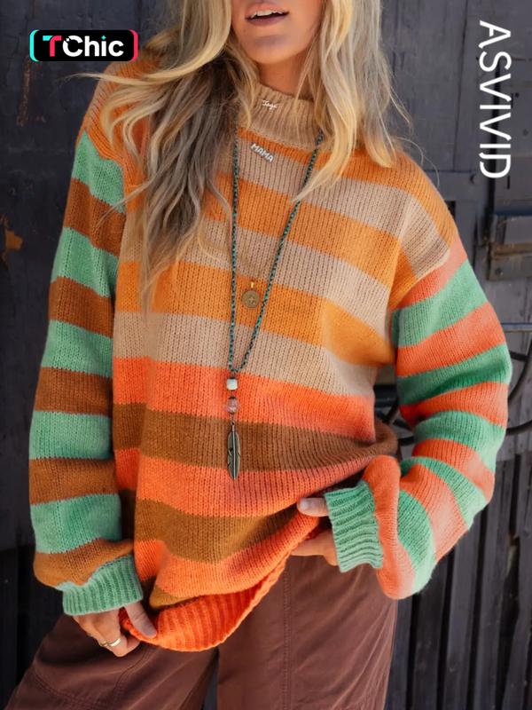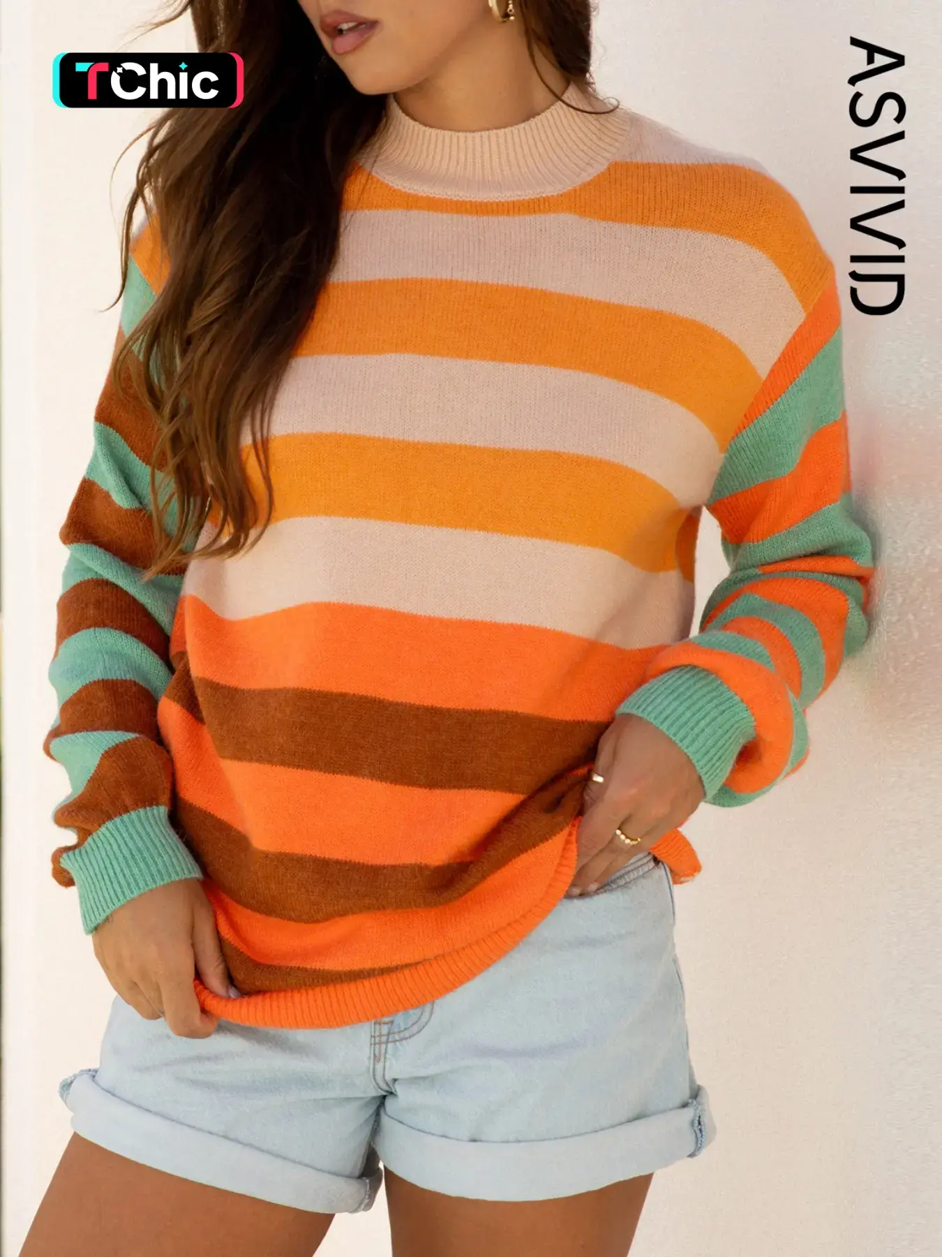 All the fall feels in one sweater 🍂✨ Cozy, cute, and totally @Asvivid . #SweaterWeather just got a glow-up! #ootd #FallFashion #AsvividStyle #StripedSweater