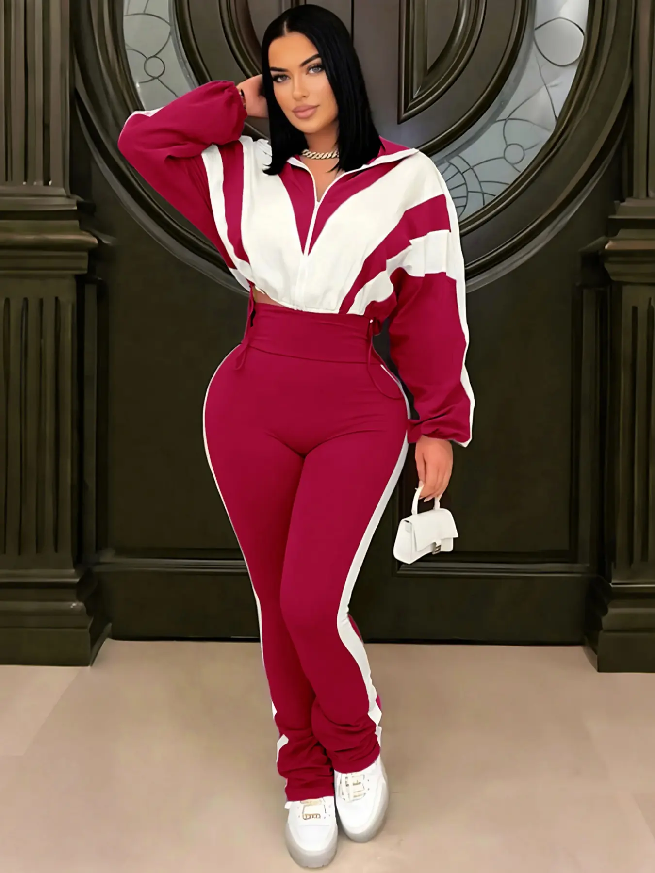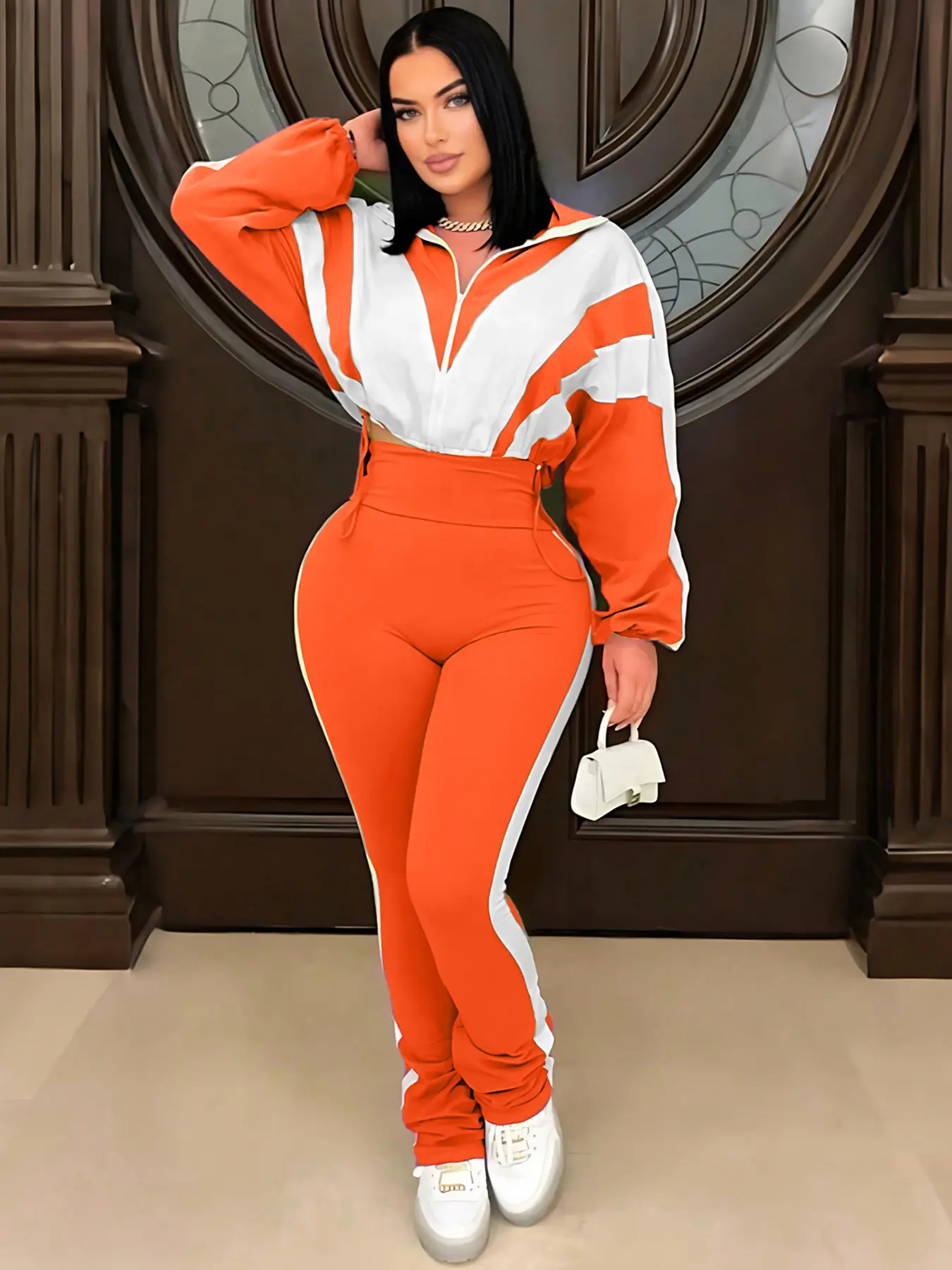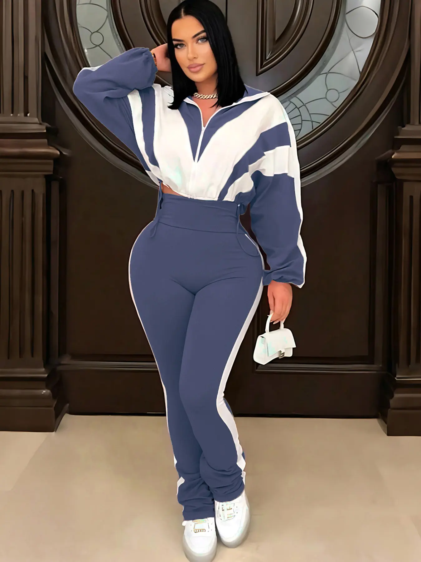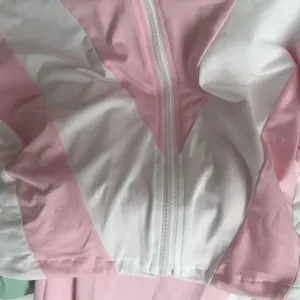 Looks just like the picture. Nice, soft, comfortable material. Collar was kind of floppy but I wore straight out the bag to a sweatsuit party. Even saw someone with the same thing on.. I think I wore it better