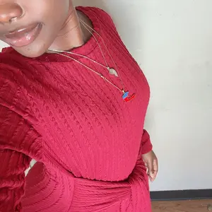 Es bonito, justo lo que esperaba por lo que pague, la tela no muy gruesa pero no se transparenta,para una salida a cenar y un bonito collar, resalta mas.