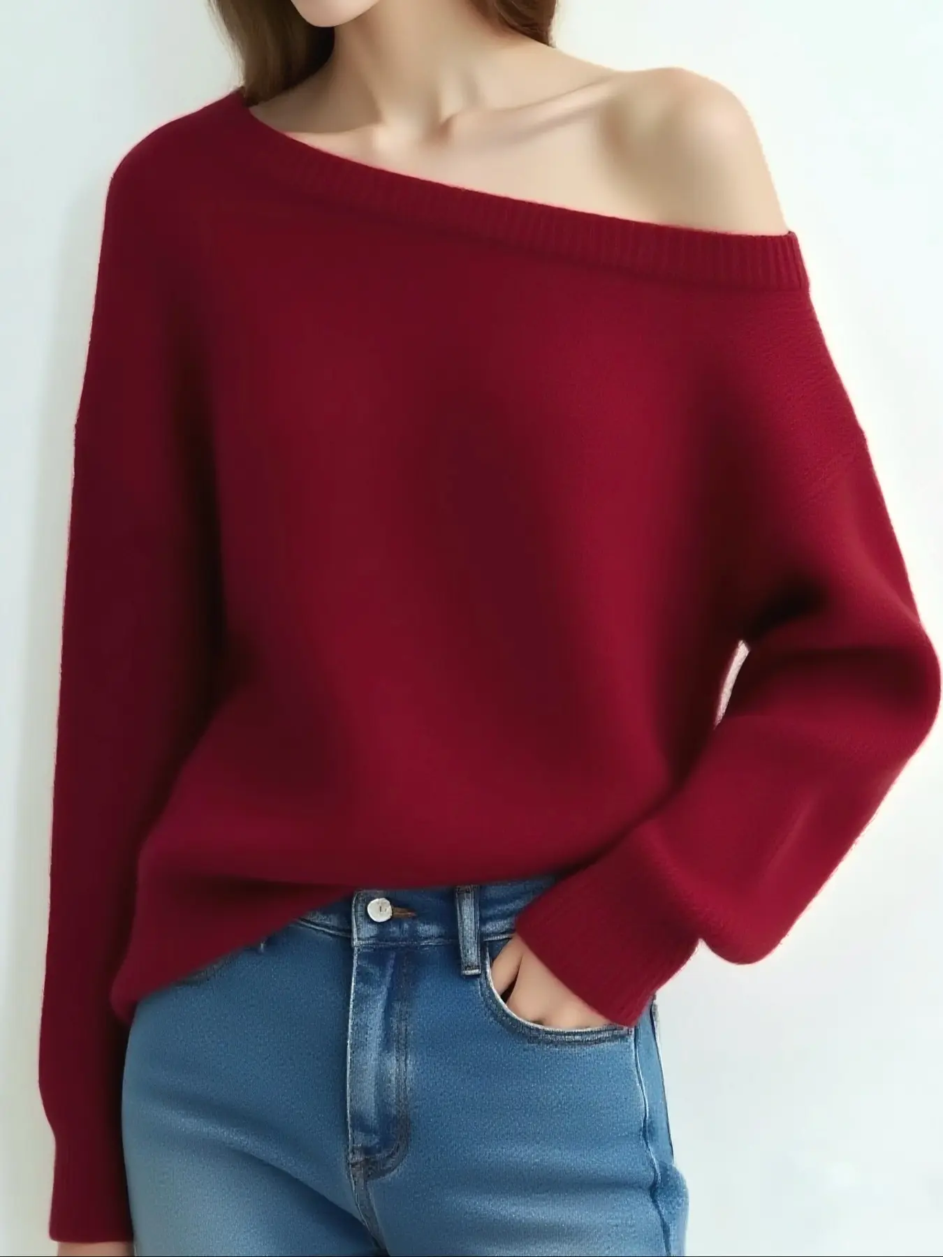 Super soft winter sweater #sweater #offtheshoulder #softsweater #oversized #redsweater