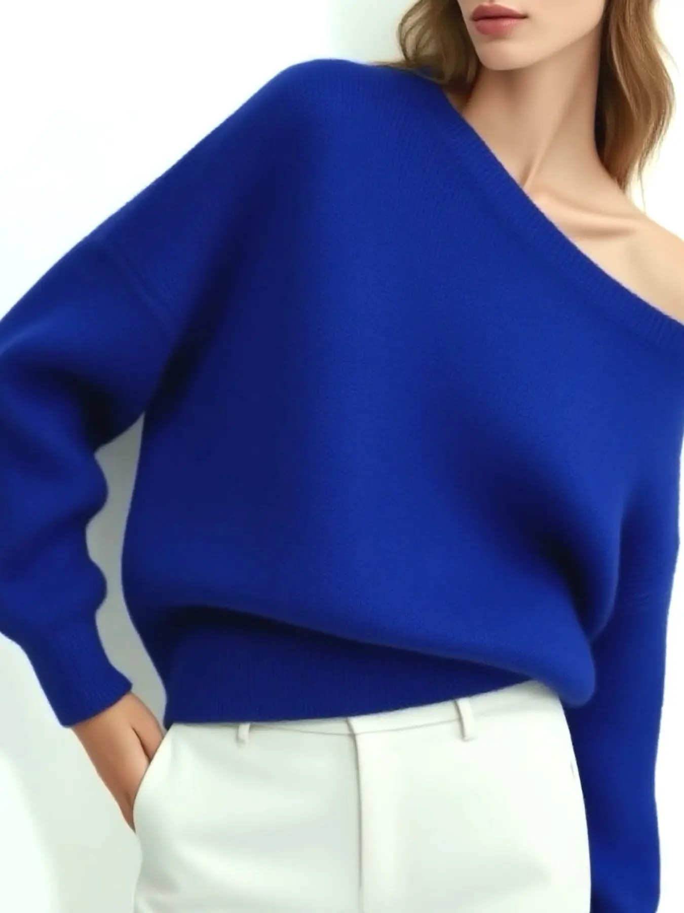 #BlueKnitSweater #CozyFashion #VibrantColor #RelaxedFit #CasualStyle