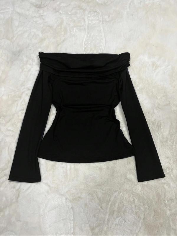5. Women's Casual Knitted Shoulderless Long Sleeve Top, Slim-Fitting Plain Design, Perfect for Vacation and Commuting, Fall & Winter Fashion