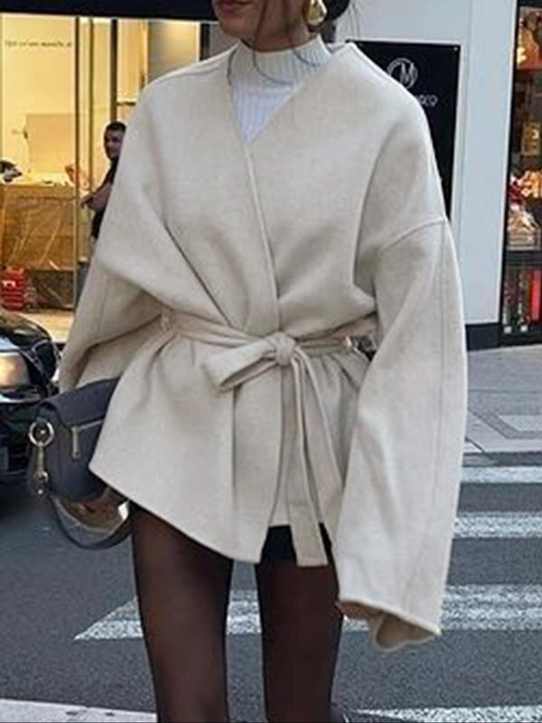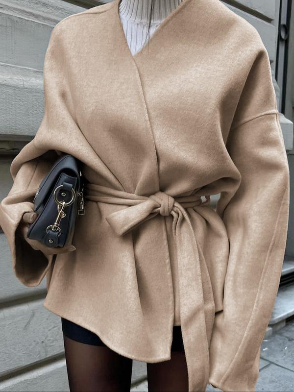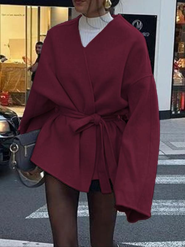 Women's Casual Fashion Long Sleeve Lace-Up Jacket, Plain Woven Fabric, Fitted Design, Fall & Winter Daily Wear Outerwear Coat, Womenswear