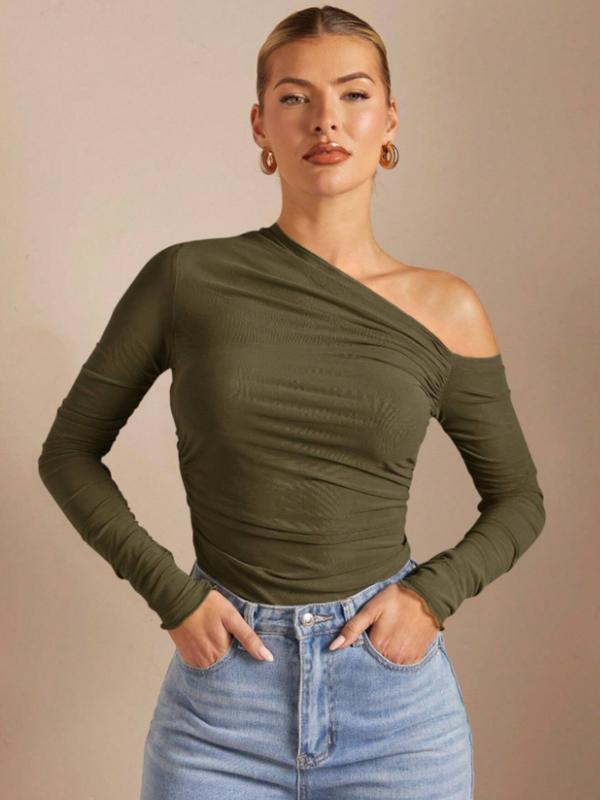 5. Women's Plain One Shoulder Tee, Trendy Casual Long Sleeve T-shirt for Daily Wear, Ladies Summer Outfit