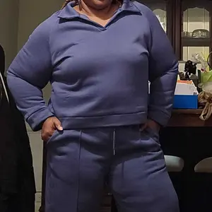 The pink color is very cute, and the set is warm and super affordable. It does run big — I ordered a size small, which is usually my size, but the top fits more like a medium. Overall, it’s still a nice and cozy set for the price