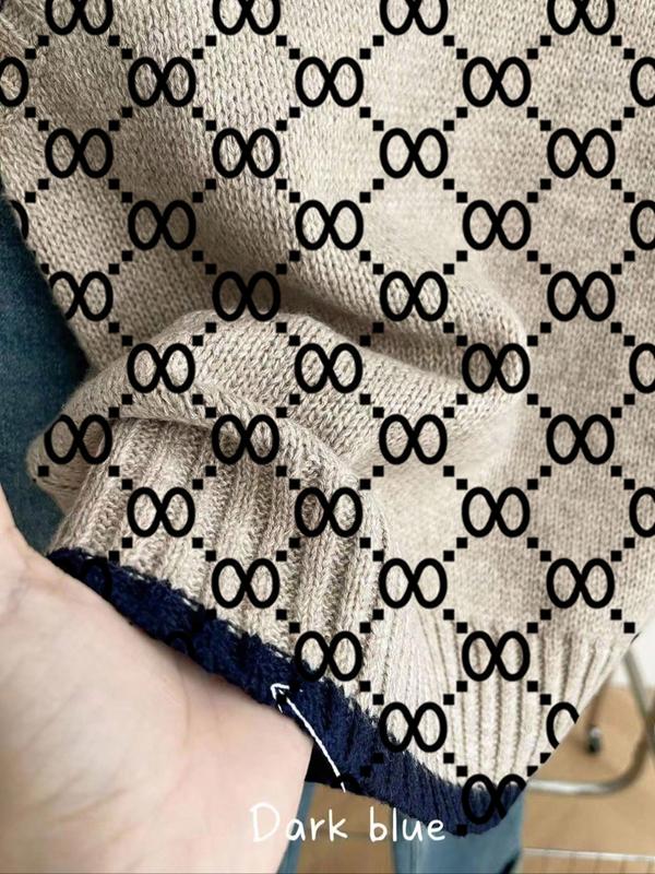 【Unique Colorblock】: Features a colorblock pattern with deep blue accents and bold black-and-white check, distinguishing it from typical knitwear.