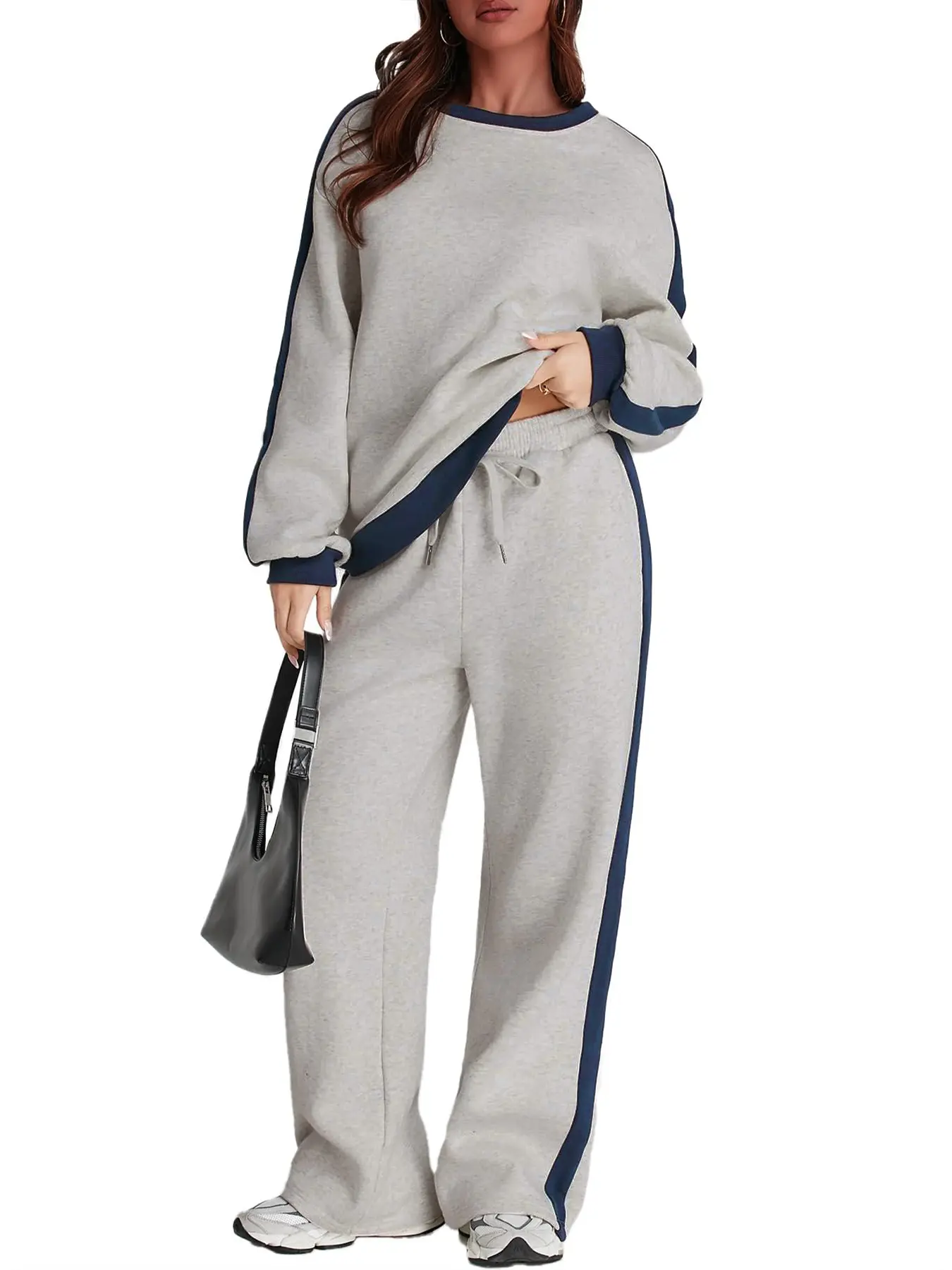 Women's Casual Patchwork Set, Colorblock Top & Loose-Fit Pants, Fall Winter, Comfortable Sportswear for Daily Wear #womenssweatshirtset #winterloungewear #womenssweats #aritziasweatsuit #womens2piecesets #loungewearsets #cozyloungewearset #wooljumpsuit #yogajumpsuit #lulutracksuit