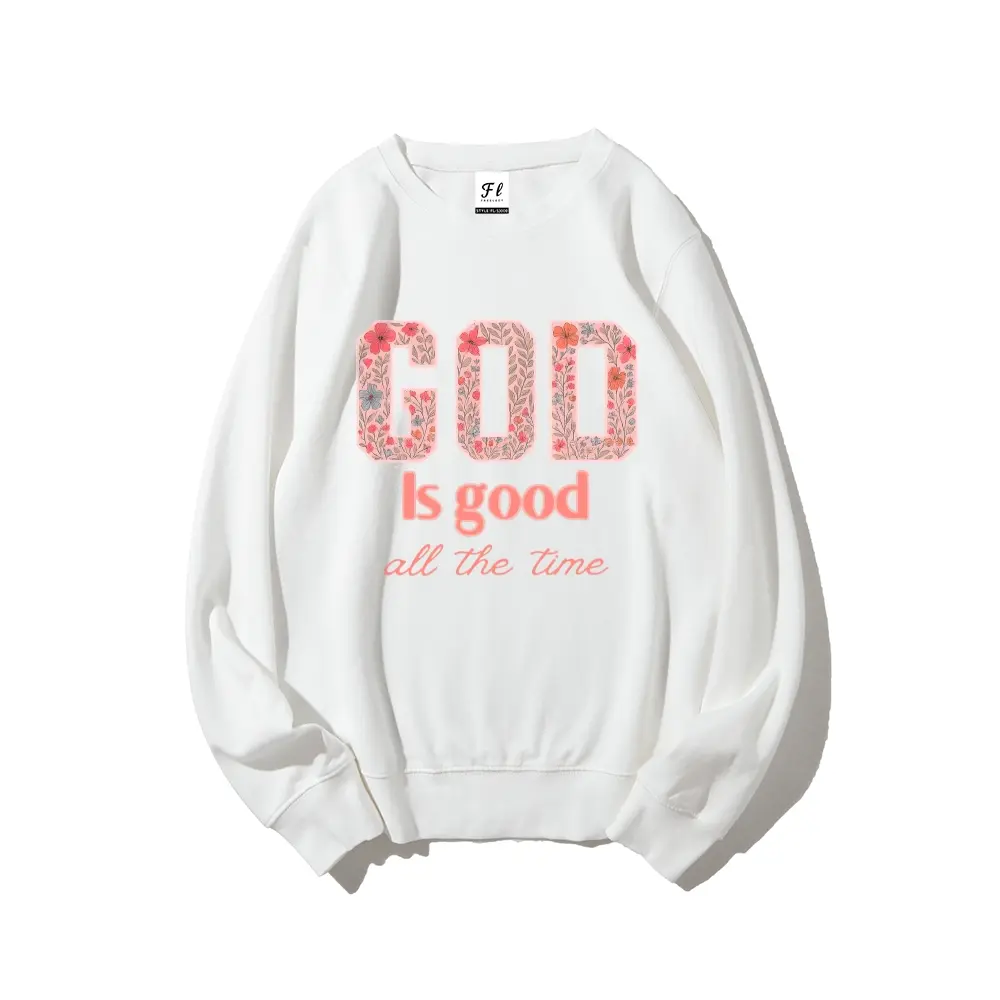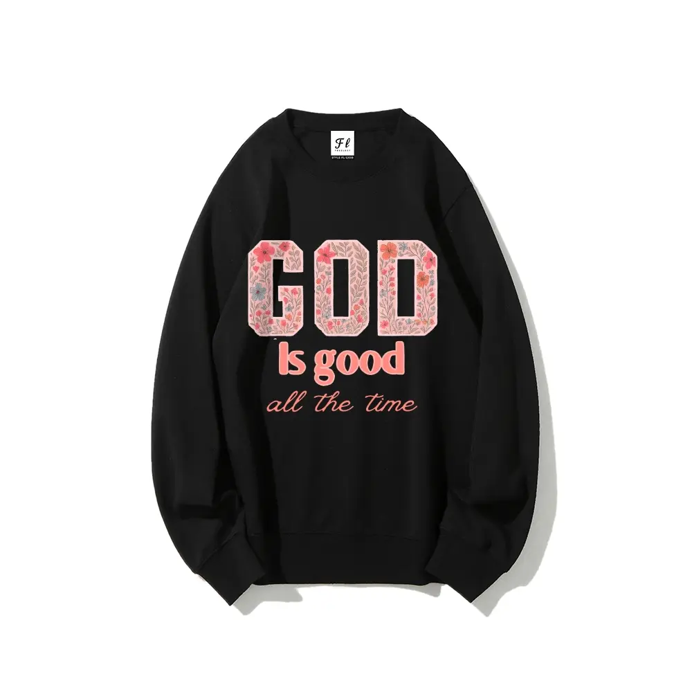 God Is Good ALL The Time Women's Sweatshirt Casual Print Long Sleeve Round Neck Pullover for Daily Wear, Ladies Clothing Fall & Winter Fashion Unisex Sweatshirts