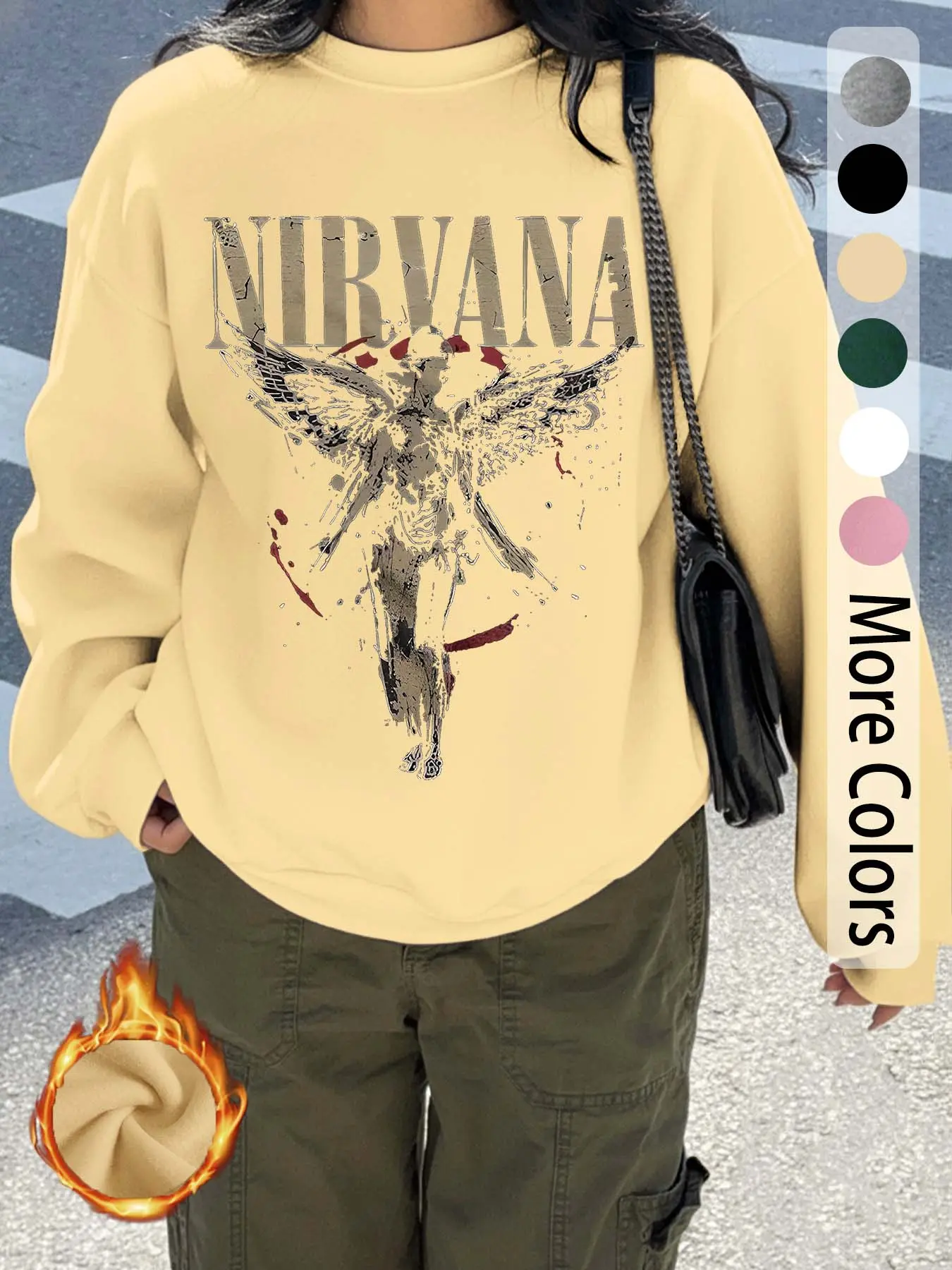 "Nirvana" Nirvana band pattern letter print, casual retro long-sleeved pullover, round neck casual sports women's pullover sweatshirt, autumn and winter plus velvet women's clothing