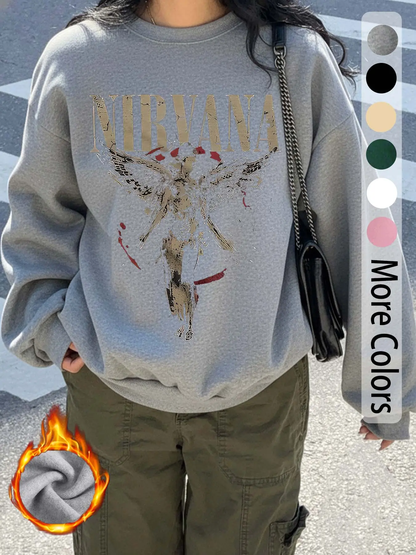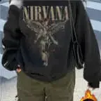 【Bold Print】: Showcases a distinctive 'Nirvana' logo graphic, setting this sweatshirt apart in the fashion landscape.