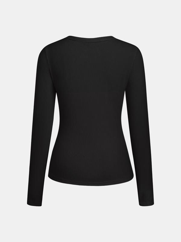 Women's Casual Round Neck Long Sleeve Button Front Top, Basic Solid Color Design, Extended Length, Perfect for Daily Wear, Womenswear