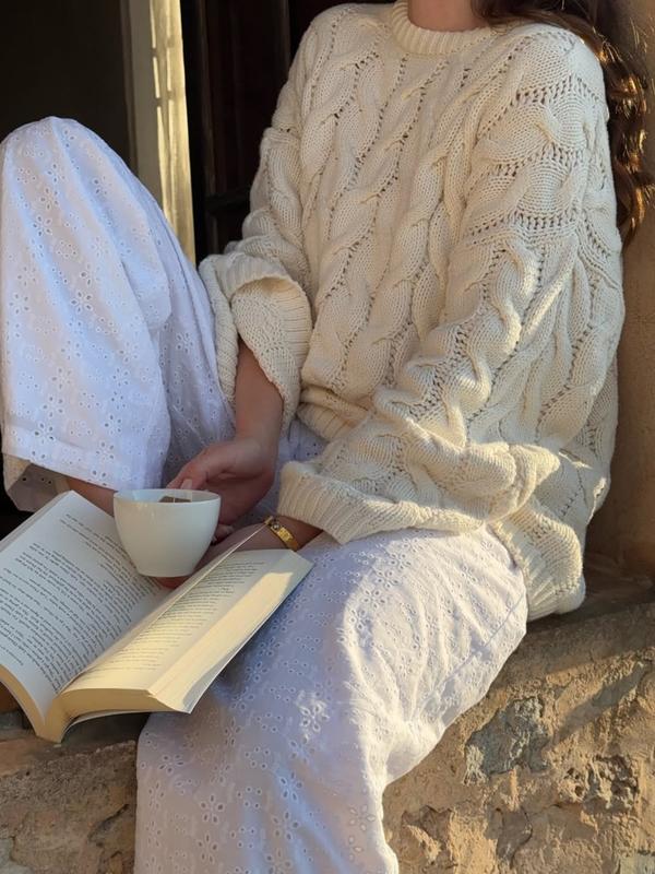 Absolutely love the sweater! It’s perfectly oversized, and the cable is classic! Very soft.