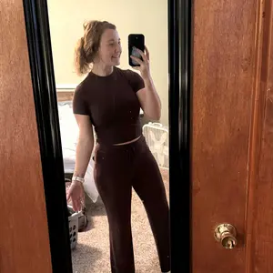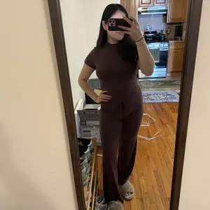 Love it🤎 very soft and cozy material. Fits perfectly on me. Great for lounging around in the house 🫶🏻 also lovee the color 🍫🥰
