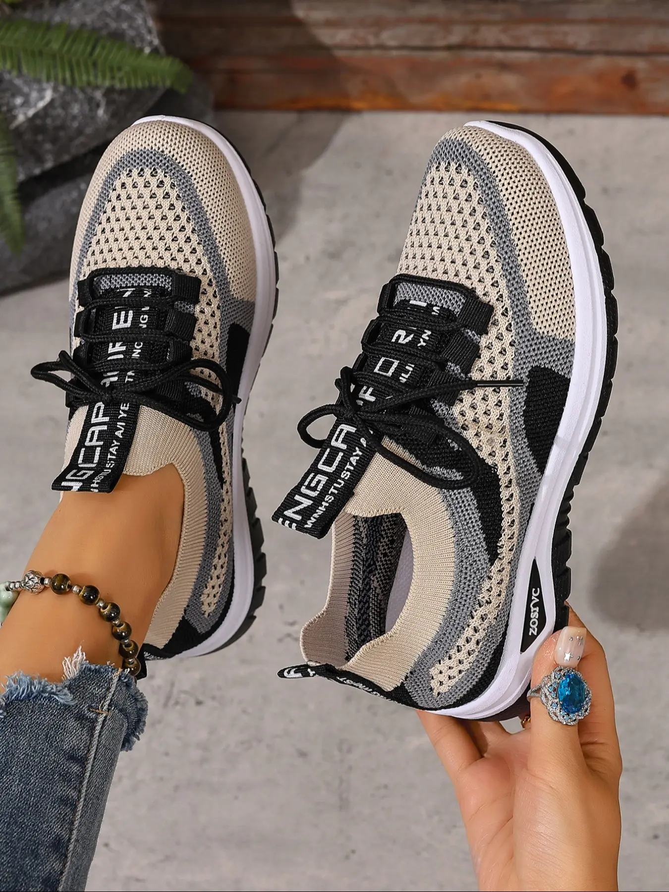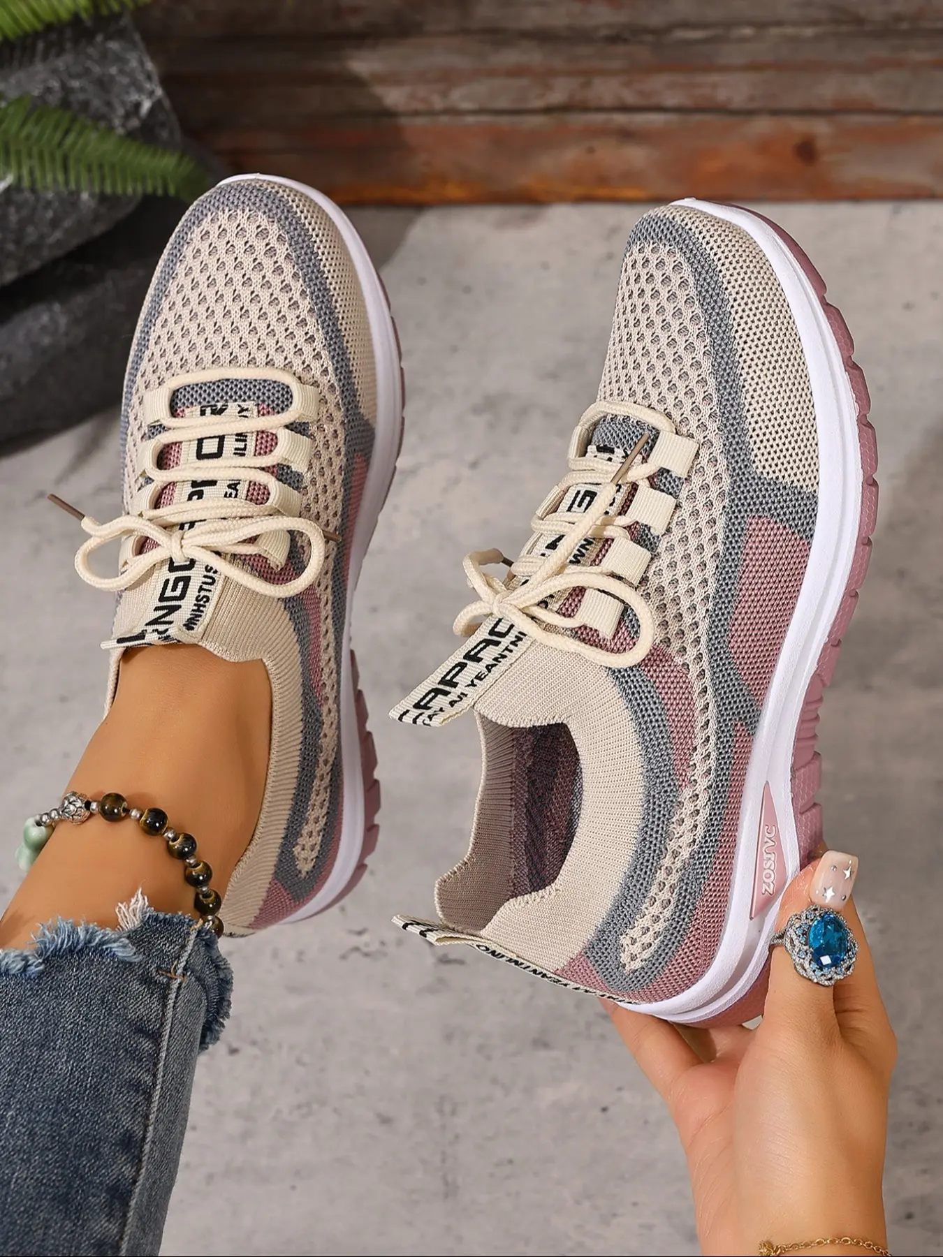 The gym shoes exactly like the picture. Very comfortable. Roomy. Color is vibrant. Great quality for the money. Doesn't look cheap. No scent. I also have a grey pair. I will be purchasing more colors. Absolutely
