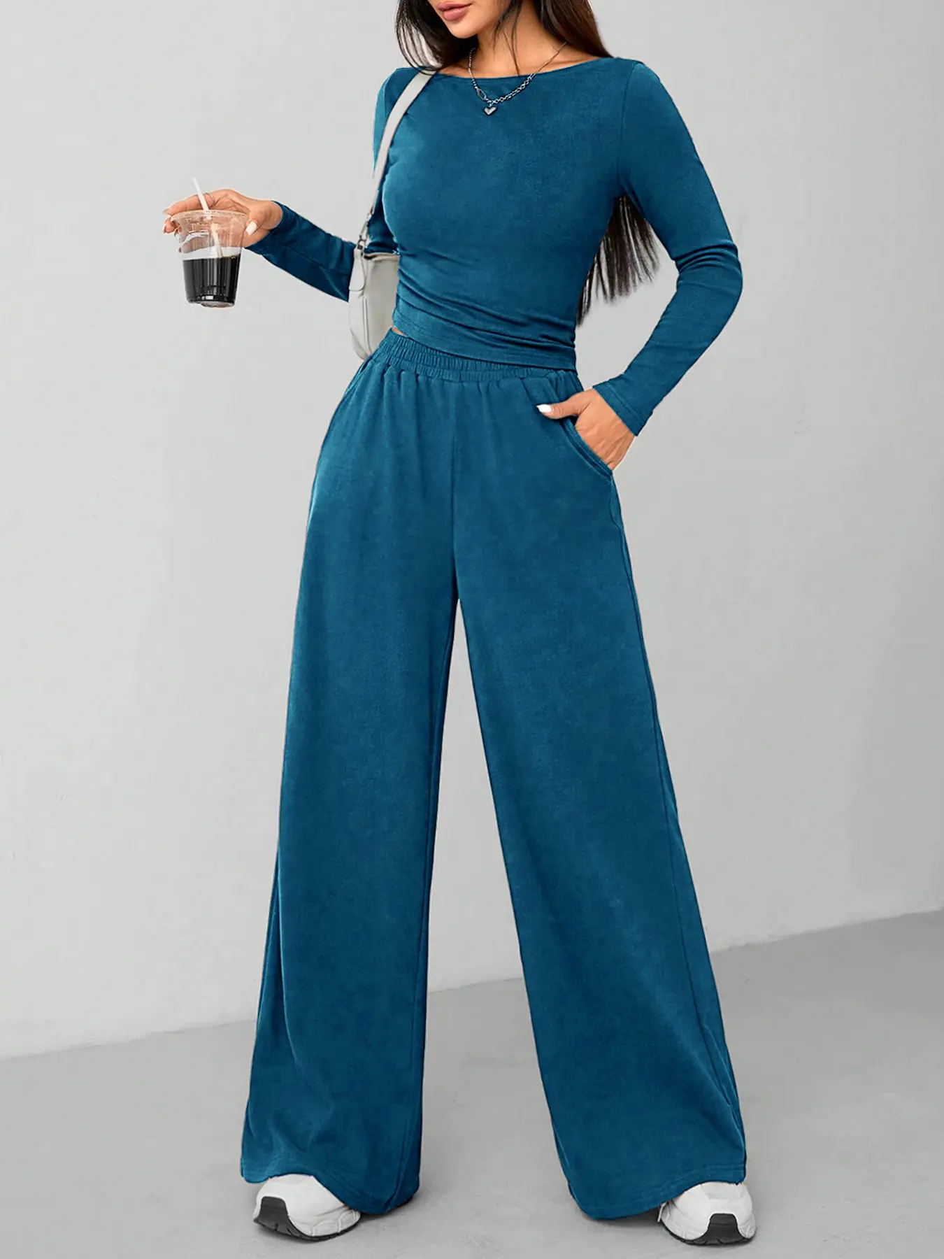 Love, love, love! So soft and yummy! This is a little set that you can lounge around in the house in or step outside to run errands or grab a lunch. The top is super cute and has some roasting detail on the side in the pants are wide leg and comfy. I highly recommend.